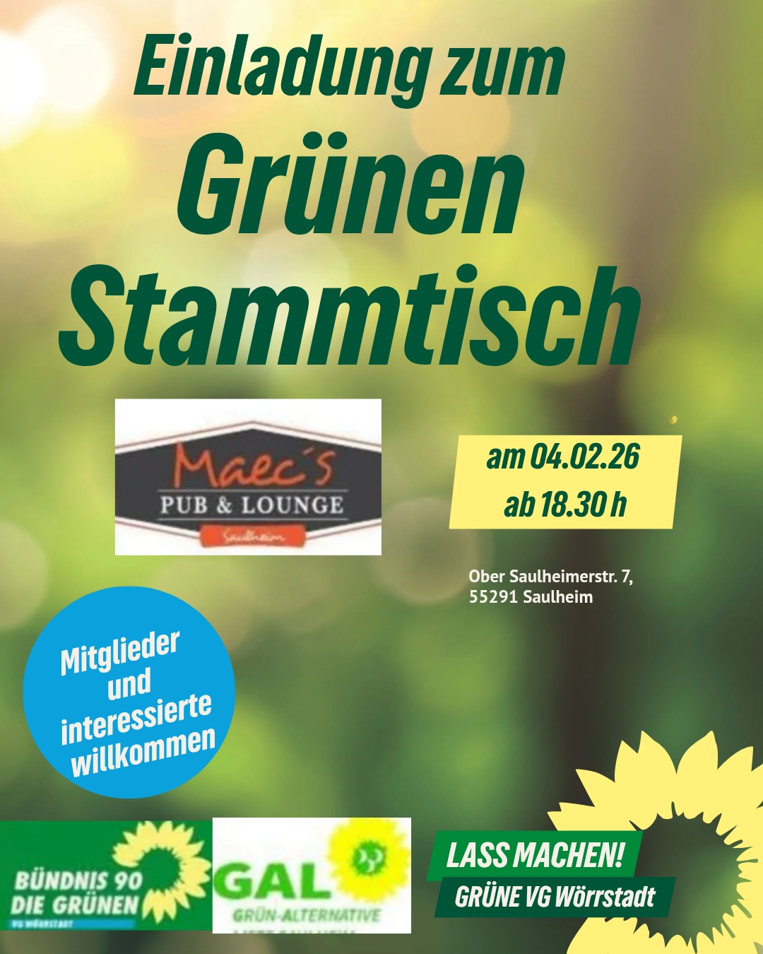 Liebe Interessierte an einer Mitgliedschaft bei Bündnis 90/Die Grünen, Kreisverband Alzey-Worms!